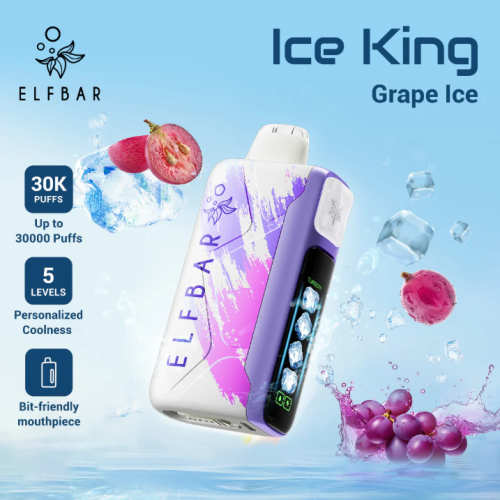 جهاز الف بار ايس كينق 30000 سحبة ELFBAR ICE KING 30K من أفضل أجهزة الفيب في السعودية لعشاق الشيشة الإلكترونية. يتميز بتصميم عصري وعدد سحبات ضخم يصل إلى 30,000 نفخة، مع إمكانية ضبط البرودة على 5 مستويات مختلفة تناسب جميع الأذواق. يوفر تجربة فيب منعشة وقوية مع نكهات متنوعة وجودة عالية من Elfbar.